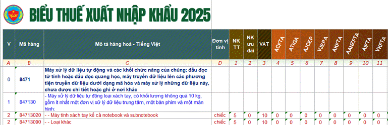 Máy tính xách tay mã HS 84713020